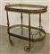 Carrello portavivande in metallo dorato con due ripiani in vetro, di cui quello