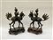Bronzi raffiguranti fanciulli a dorso di qilin, indossano lunghe vesti e portan