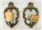 Coppia di ventole a una fiamma con cornici in legno intagliato, laccato e dorato a volute e grappolo d'uva. Secolo XIX (cm 26x39) (difetti e mancanze)