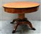 Tavolo tondo con piano intarsiato al centro da rosone. Fascia a quattro cassetti poggiante su gamba centrale a colonna terminante a piedi ferini. Sec. XIX (d cm 110x 72) (difetti)