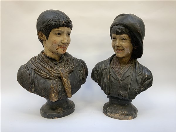19th-centyury art “Young country boys” pair of terracotta busts (defects)