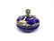 Ciotola centrotavola in vetro trasparente blu con coperchio parzialmente argent