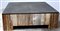 Tavolo da salotto con struttura in legno e piano in metallo (cm 135x45x135) (lievi difetti)