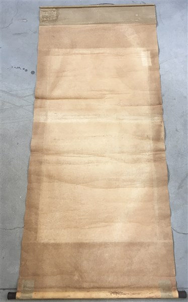 Scroll inchiostro e colori su carta, stile Lu-Ji raffigurante volatili con arbusti (difetti)