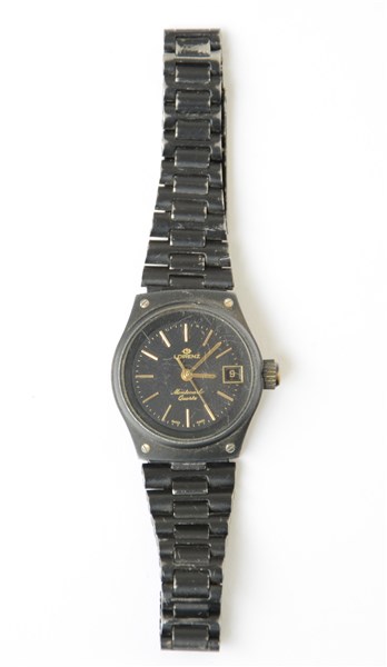 Orologio da polso da donna in metallo con quadrante, movimento e cassa firmati. Movimento al quarzo, quadrante con indici riportati. Cassa n. 2275 933 (d mm 26)