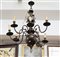Lampadario "olandese" in bronzo a otto luci, decorato ad animali stilizzati. Br