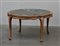 Tavolo basso con struttura in legno, piano in marmo venato verde. Italia, anni '50. (h cm 63; d cm 110) (difetti)