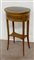 Tavolino da lavoro ovale in legno con filettature, piano sollevabile, secolo XI
