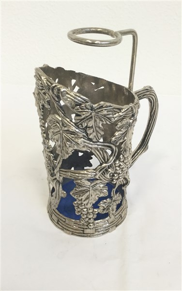 Portabottiglie in metallo argentato traforato e decorato a foglie di vite e gra