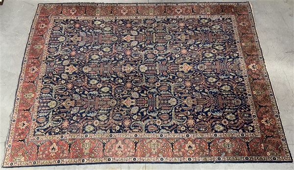 Tappeto Tabriz, Persia, secolo XX. Decoro all over con rami fioriti policromi su fondo blu. (cm 400x300) (Difetti, mancanze e rapature)