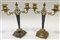 Coppia di candelabri a due fiamme con base in argento dorato e decorato a rocai