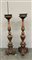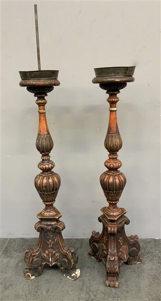Coppia di portaceri in legno intagliato con base tripode con piedi a zampa feri