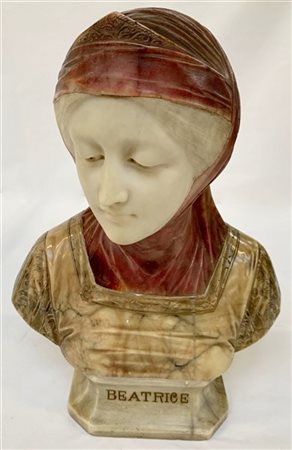 "Beatrice" scultura in alabastro, firmata al retro (h cm 36) (difetti)