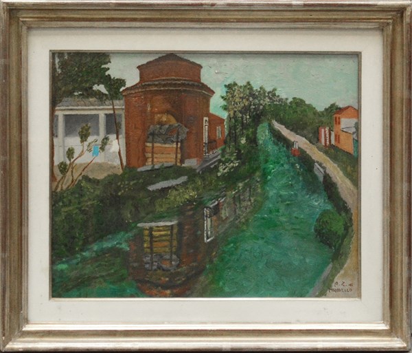 Lot 310 | A. Z. di Mirabello "Scorcio con Naviglio" olio su tela (cm 40x50) firmato in ba