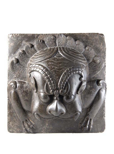 Altorilievo di forma squadrata in pietra scura scolpito a figura fantastica. �India, secolo XIX� (27x27 cm.)(difetti)