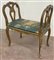 Panchetto in legno dorato con braccioli sagomati, traforati e intagliati, gambe mosse, rivestito in tessuto a fiori (difetti)
