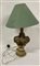 Antico pinnacolo in legno scolpito e laccato in policromia a foglie e frutta (h cm 28) montato a luce elettrica in epoca posteriore, paralume in stoffa (difetti e mancanze)