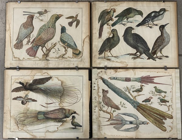 Lotto composto da quattro antiche incisioni colorate a soggetto ornitologico, e