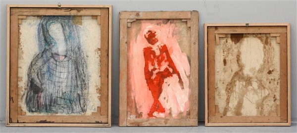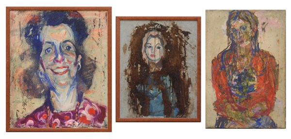 Lotto di tre dipinti ad olio su tela raffiguranti "Figure femminili" misure diverse, due in cornici