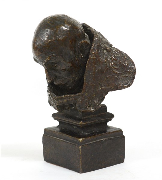 Maestro lombardo fine XIX Secolo "Ritratto di prelato" scultura in bronzo (h cm 22)