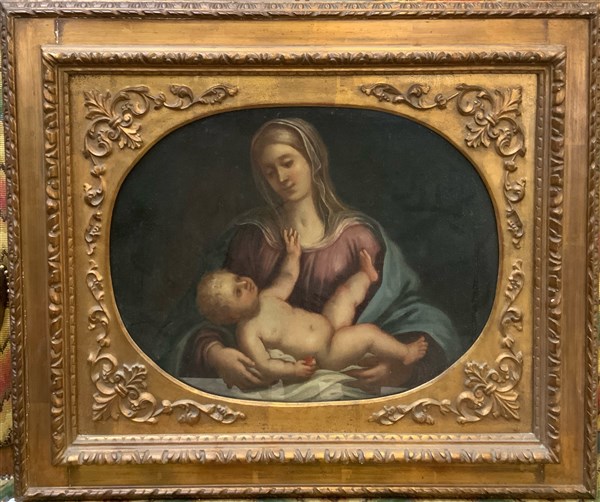 Scuola italiana del secolo XVIII "Madonna con Bambino" olio su tela (cm 46,5x72