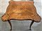 Tavolo da gioco con piano di forma mossa lastronato e filettato in legni vari,