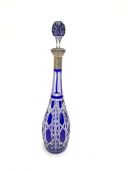 Lot 500 | Manifattura di Boemia, bottiglia in cristallo blu con tappo, ghiera in argento