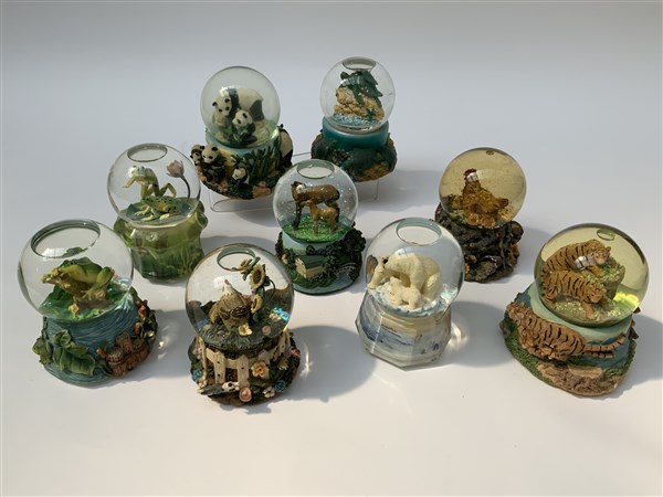Lot 502 | Gruppo di nove boules de neige a tema naturalistico, vetro e resina policroma (