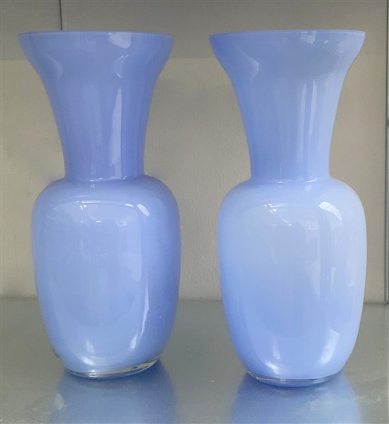 Lotto di due vasi a balaustro in vetro opaco azzurro (h cm 35)