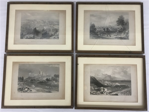 Lotto composto da quattro stampe di Thomas Abiel Prior (1809-1866) da invenzioni di W. Harvey e J. Thorne raffiguranti Oxford, Edimburgo, Windsor e Dover (cm 19x27 il foglio). In cornici