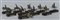 Lotto di dieci soldatini a cavallo in metallo argentato e cesellato inerenti al periodo napoleonico composto da quattro soldati austriaci, quattro prussiani e due inglesi su basamento di legno ebenizzato e cartiglio di identificazione.