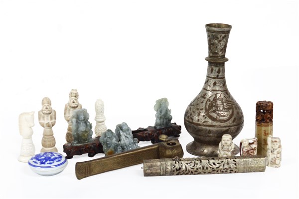 Lotto di oggetti vari di manifatture diverse contenente tre netsuke e altri ogg