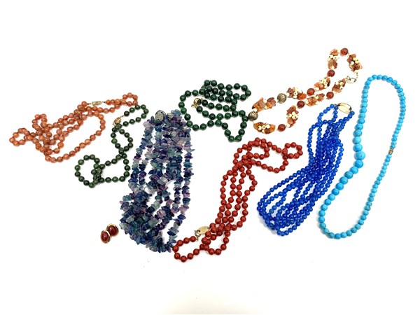 Lotto composto da otto collane e un paio di orecchini in pietre dure rifiniti c
