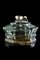 Scatola in vetro di forma esagonale con coperchio. Presa in argento con ghiande in avorio. Titolo 800 (cm 20x14x17) (difetti)