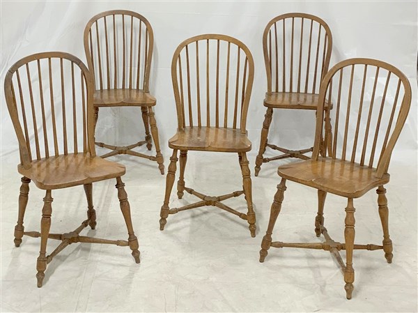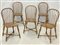 Gruppo di cinque sedie in mogano con gambe tornite riunite da crociera e schien