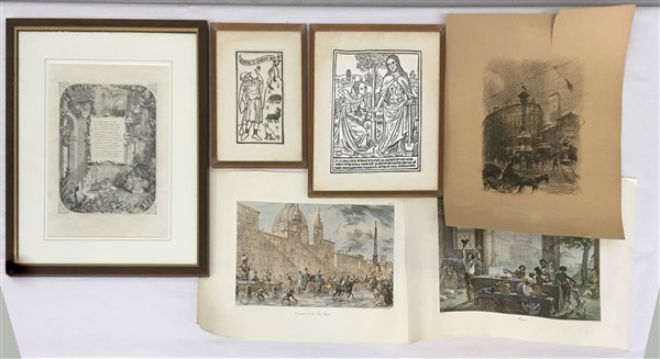 Lotto composto da: una stampa riproducente lo Sposalizio della Vergine di B. Luini, in cornice antica; il frontespizio del volume "Italia. Viaggio pittoresco dall'Alpi all'Etna" , in cornice; e altre cinque stampe di soggetti diversi.