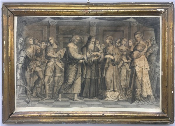 Lotto composto da: una stampa riproducente lo Sposalizio della Vergine di B. Lu