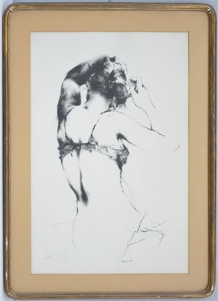"Profilo femminile" disegno a china su cartoncino (cm 60x40) firmato e datato 1957, in cornice