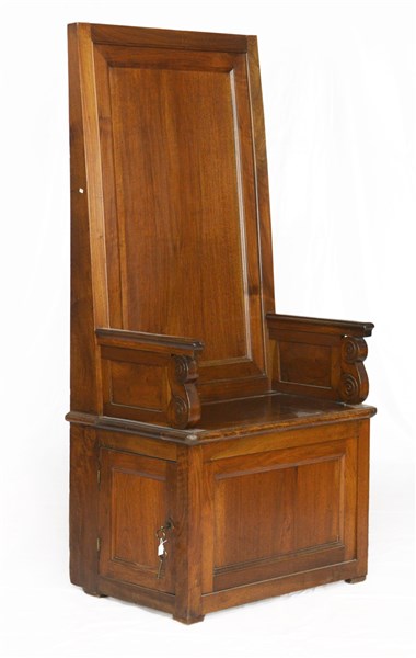 Panca a schienale alto, braccioli intagliati , due antine laterali riquadrate (