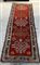Tappeto Kazak, Caucaso, inizio Secolo XX, decoro con cinque alberi della vita nei toni del bianco e nocciola su fondo rosso. Alla base degli alberi è raffigurato l'antico simbolo del volatile mitologico a due teste, estremamente stilizzato. Datato con caratteri persiani in alto a destra e sinistra. Bordura con Gül policromi su fondo nocciola (Difetti, vecchi restauri, riprese di colore) (cm 338x119)
