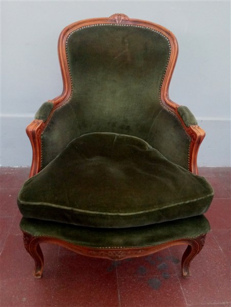 Bergère di forma mossa con rivestimenti in velluto verde (difetti)