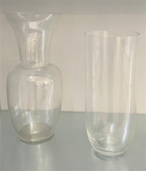 Lotto di due vasi diversi in vetro incolore (h max cm 35)