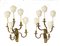 Coppia di appliques a cinque fiamme in bronzo dorato e cesellato a volute veget