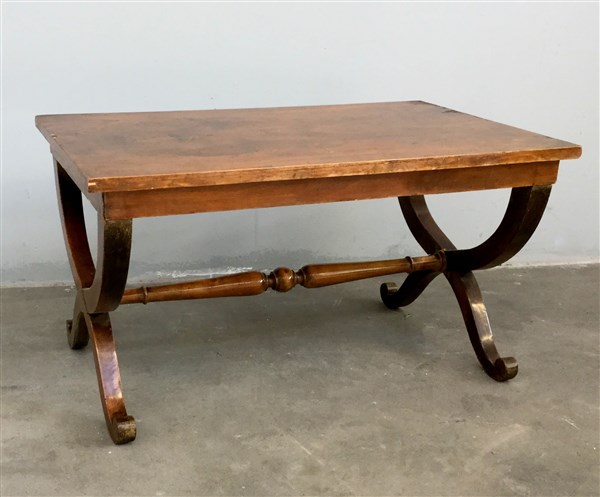 Tavolo basso con gambe a lira unite da traversa a rocchetto (cm 81x42,5x50)(dif