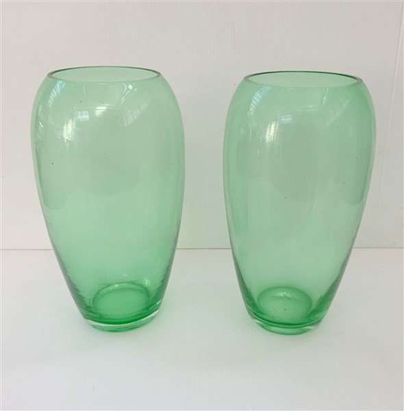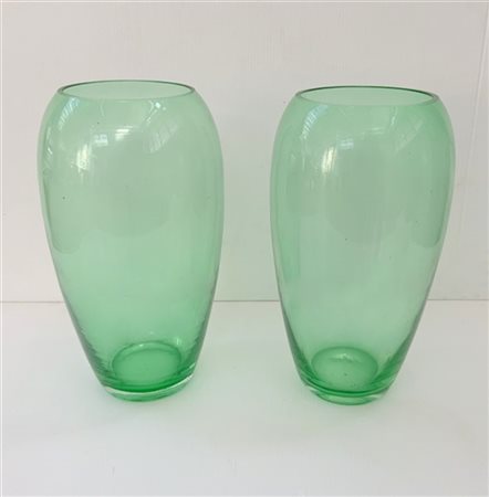 Coppia di vasi in vetro trasparente color verde (h cm 28)