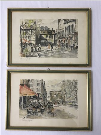 Lotto composto da una coppia di riproduzioni su carta raffiguranti scorci di Parigi (cm 33x44) In cornici (difetti)