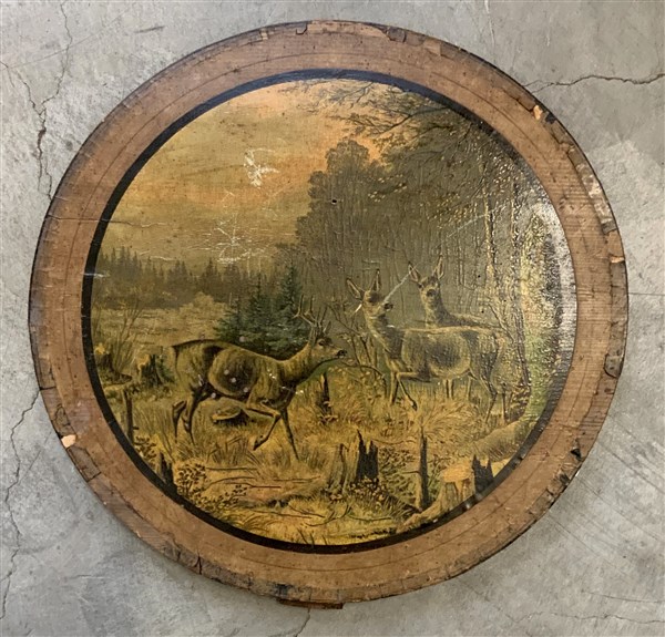 Bersaglio in legno raffigurante cervi nel bosco (d cm 46) (difetti)