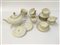 Manifattura tedesca, parte di servizio da tè in porcellana con profili dorati c