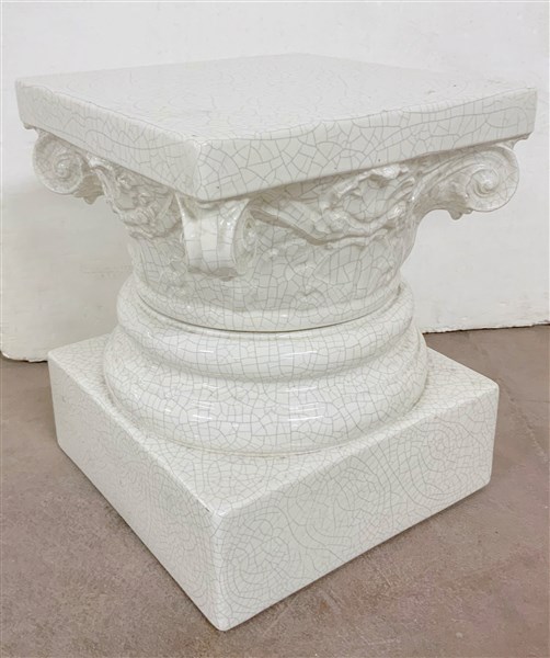 Base porta vaso in ceramica craquelé a forma di capitello (cm 32x38x32) (difetti)