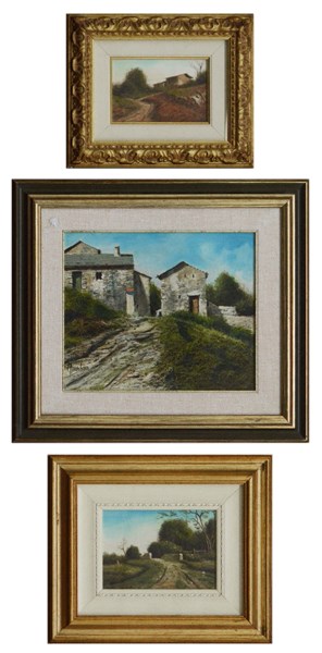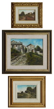 Sansone Mirabito, lotto di tre dipinti ad olio raffiguranti paesaggi, misure di
